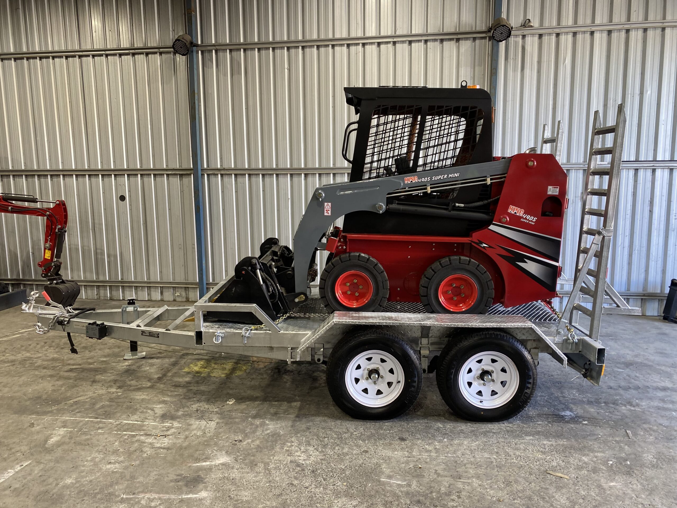 Rates include: T35 loader on super duty trailer (blue tooth brake controller included on trailer), 4 in 1 bucket with teeth. Tow weight 2400 kg